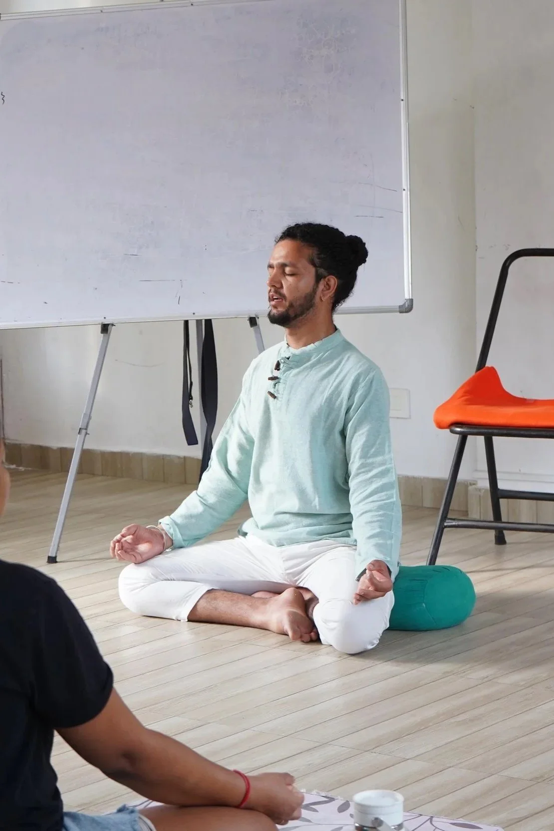Vikas leads gentle movements and pranayama to deepen awareness.